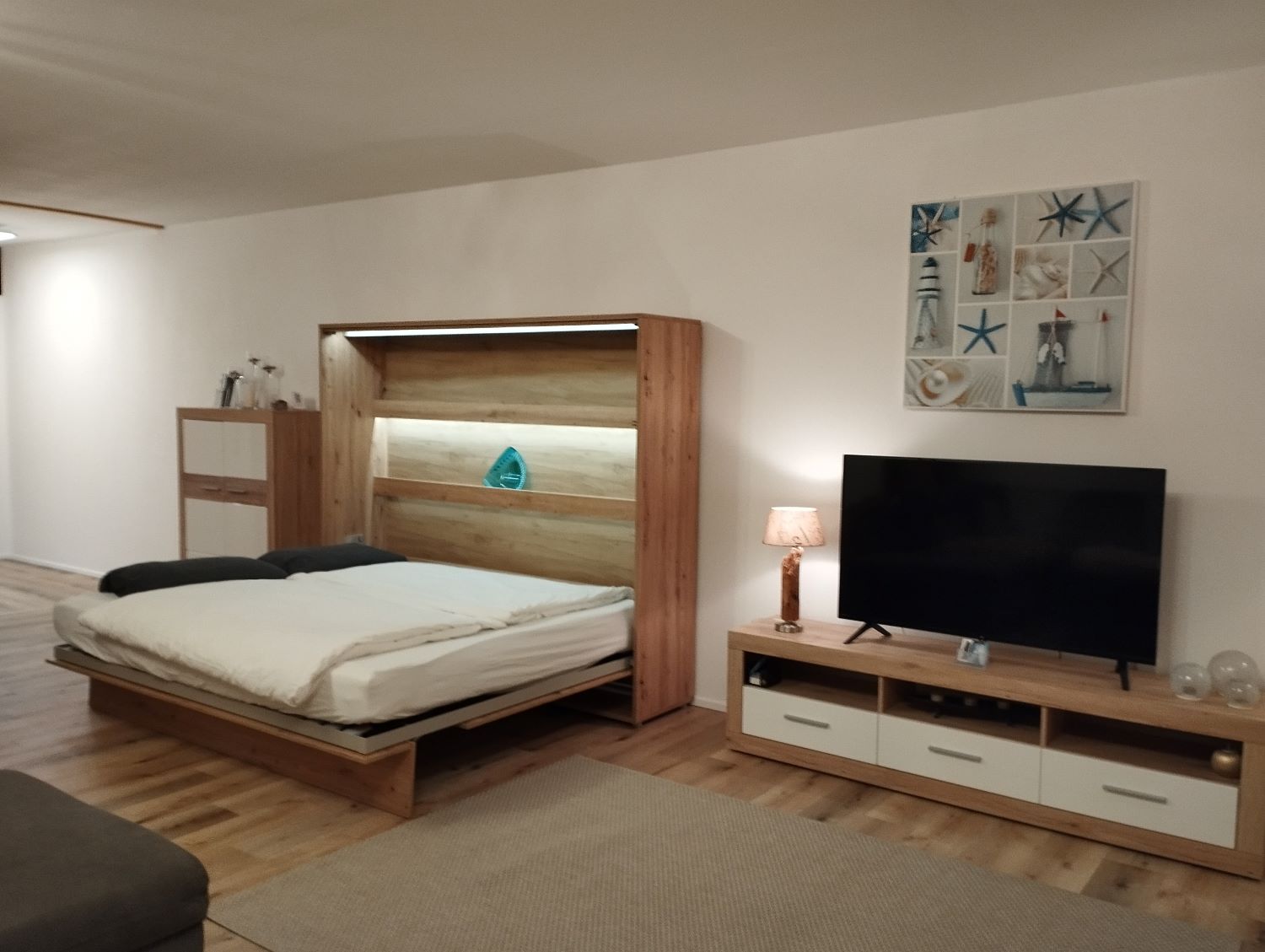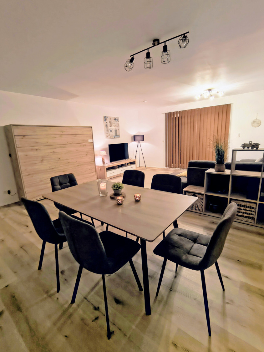 Die Ferienwohnung ist für zwei bis sechs Personen geeignet, mit einem großen Doppelbett, einem Wandbett mit 1,60 X 2,00 m im Wohnzimmer und einer Schlafcouch für 2 Personen, bietet das Appartement